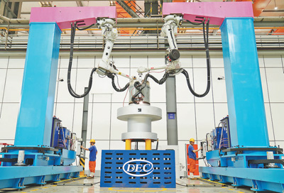 图为东方汽轮机绿色高效焊接数字化车间。。。。。贾伟明摄(人民视觉)