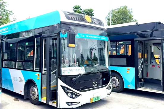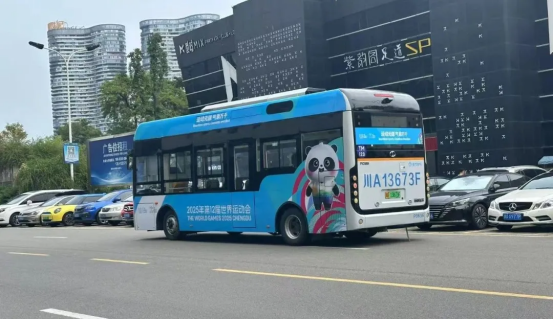 为践行成都世运会绿色低碳办赛理念,,,,,,,,这批氢能公交车通过“氢”和“氧”的电化学反应爆发电能从而驱动车辆,,,,,,,,全程只爆发水,,,,,,,,真正实现零排放。。。。。。。。