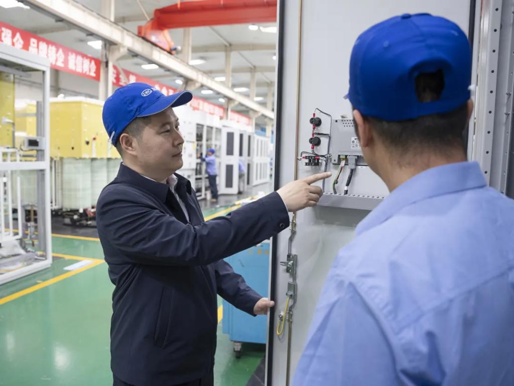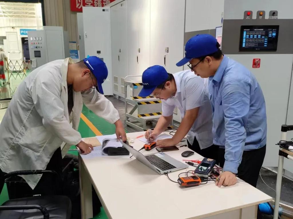 正是赖成毅和团队的坚持和严谨,,,,,,今年6月,,,,,,22兆伏安水冷型高压变频器完成第三方型式试验。。。。。。。。7月,,,,,,通过了中国机械团结组织的专家见证试验和装备出厂判断。。。。。。。。