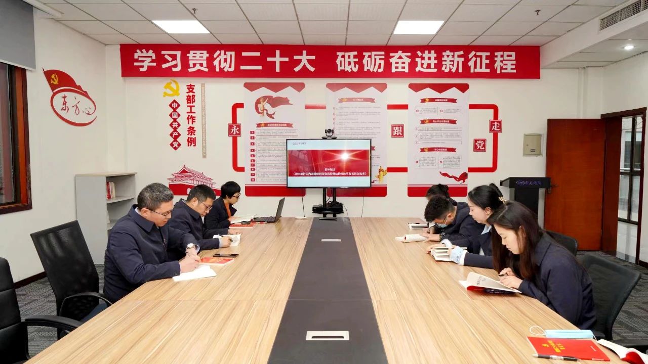 东树新质料团支部组织开展“读报告”“ 上团课”“讲心得”学习党的二十大精神“三合一”运动,,,,,,,团支部书记讲团课、忆初心,,,,,,,团员代表带动读报告、学全文,,,,,,,青年党员讲心得、谈体会,,,,,,,用听得懂、记得住、用得上的语言向宽大团员青年宣传贯彻党的二十大精神,,,,,,,用党的斗争目的感召团员青年,,,,,,,切实营造学习党的二十大精神的优异气氛。。。。。。。