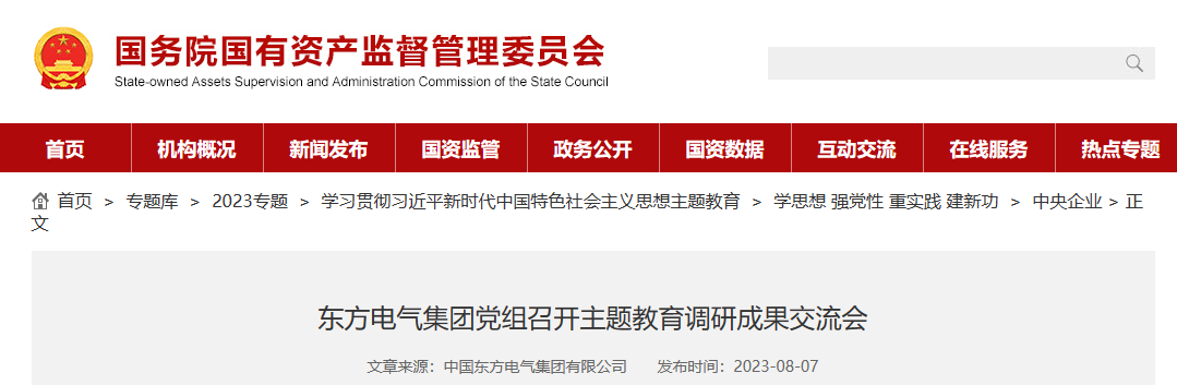克日,,,,,,东方电气集团召开党组理论学习中心组扩大学习暨主题教育调研效果交流会,,,,,,围绕调研效果,,,,,,深入交流钻研、厘清问题体现、深刻剖析泉源,,,,,,推动主题教育走深走实,,,,,,确保取得实着实在效果。。。。。。。。中央主题教育第四十六指导组到会指导。。。。。。。。