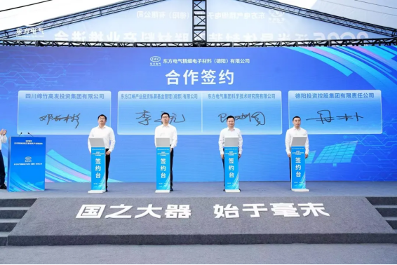 会上,,,,,,东方精材划分与无锡帝科、杭州华光签署相助协议,,,,,,绵竹市政府与东方研究院签署相助协议,,,,,,东方江峡工业投资、德阳投资控股集团、四川绵竹高发投资集团、东方研究院签署相助协议,,,,,,江苏瀚思瑞与四川绵竹高新手艺工业园区签署相助协议。。。。。