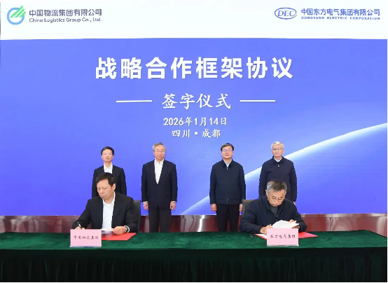 1月14日,,,,,,,,中国东方电气集团有限公司与中国物流集团有限公司在蓉签署战略相助框架协议。。。。。东方电气集团党组书记、董事长罗乾宜,,,,,,,,总司理、党组副书记张彦军,,,,,,,,中国物流党委书记、董事长刘敬桢,,,,,,,,总司理、党委副书记徐鸿配合见证协议签署。。。。。东方电气集团党组成员、副总司理孙国君,,,,,,,,中国物流党委常委、副总司理李向阳代表双方签署协议。。。。。